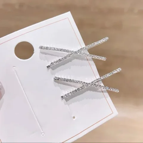 2 пары золотых/серебристых х-образных заколок с кристаллами