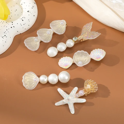 AWAYTR Заколки для волос с ракушками и жемчужинами 5 шт