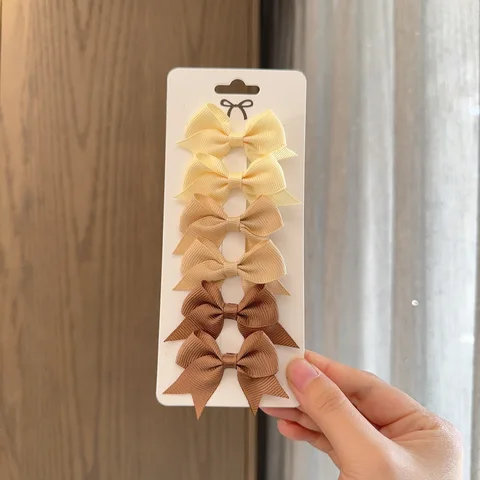 Детские заколки для волос с бантом, полиэстер, 6 шт