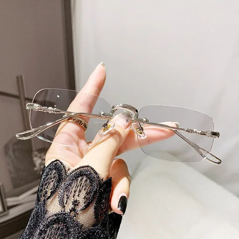 Главная страница » Серебряные квадратные очки без оправы с защитой от синего света
