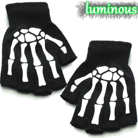Светящиеся перчатки с черепом, полиэстер, unisex