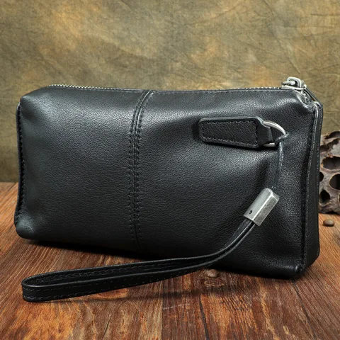 Винтажный Мужской клатч AETOO, Ранняя Повседневная Длинная сумка с RFID-защитой, Вместительная дорожная Сумочка для мужчин