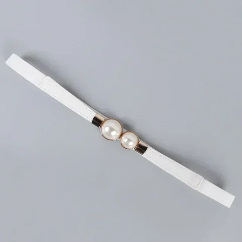 Женский эластичный пояс из искусственной кожи с жемчугом
