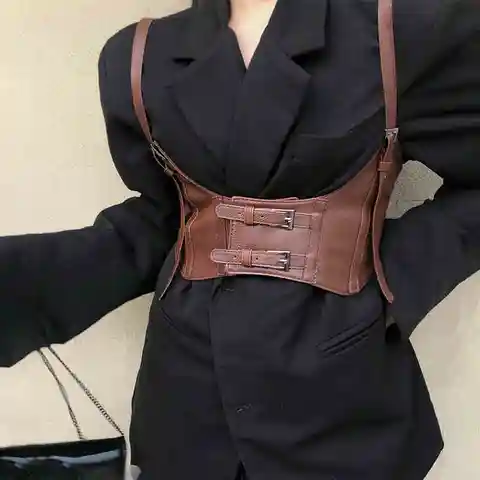 Женский широкий пояс, стильный и роскошный ретро-дизайн, универсальный декоративный ремень на талии, черный кожаный ремень
