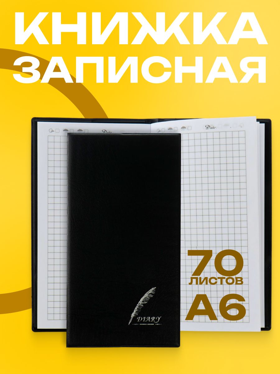 Блокнот для записей А6/70л Calligrata в клетку, чёрный/ для школы, офиса и творчества