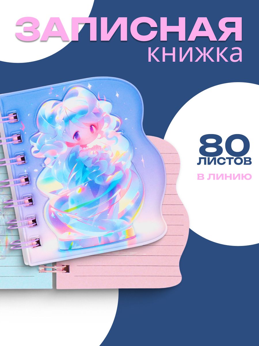 Блокнот для записей 80 л Calligrata,в линейку, цветной блок, Аниме (10,2х10,5см) / для школы, офиса и творчества