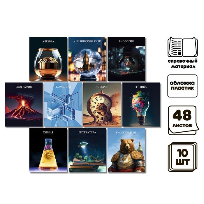 Комплект предметных тетрадей, 48 листов, 12 предметов, со справочным материалом, пластиковая обложка, блок офсет, Calligrata TOP «Школьный стиль»