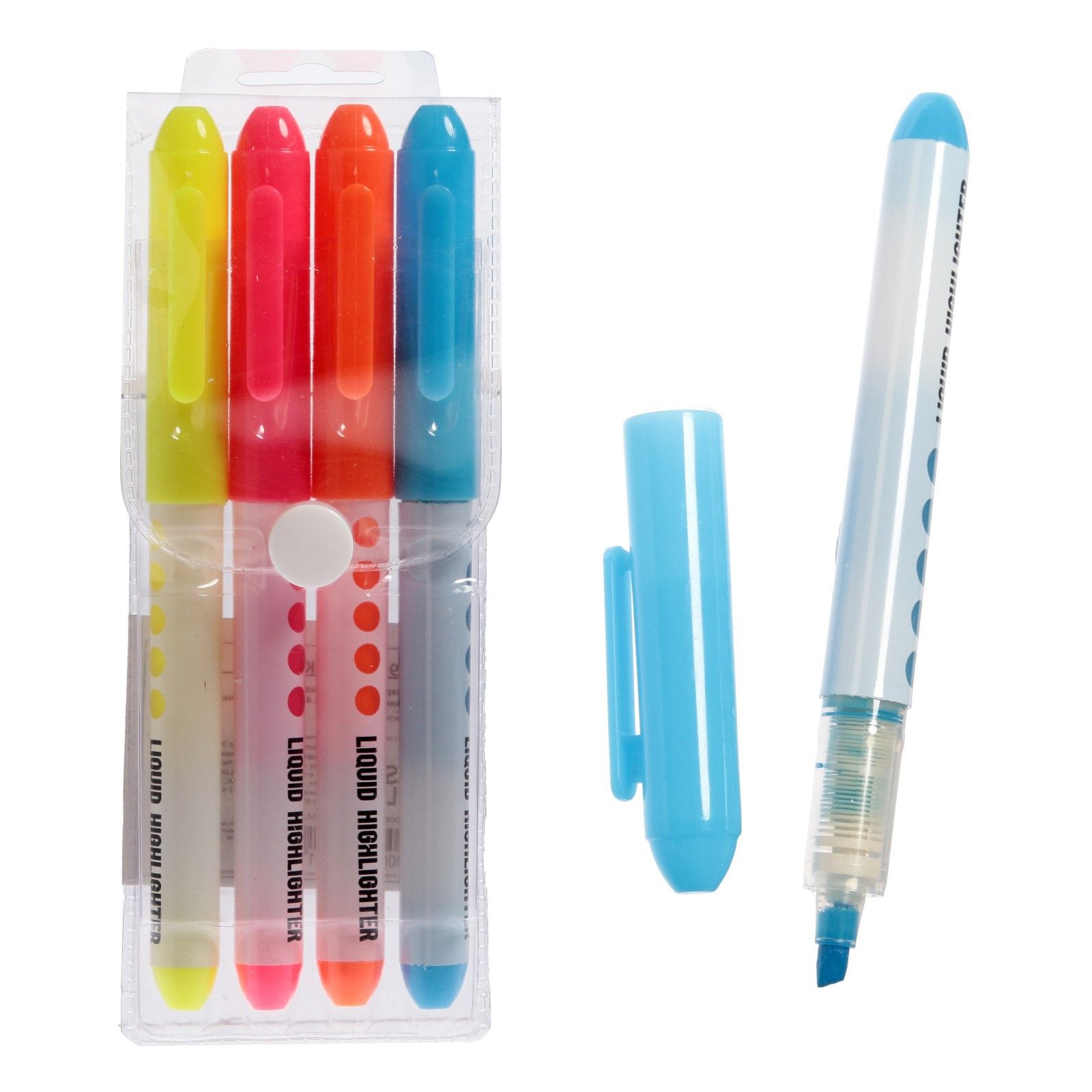Набор маркеров-текстовыделителей, 4 цвета, 4 мм, с жидкими чернилами, для школы и офиса, для учебы и рисования
