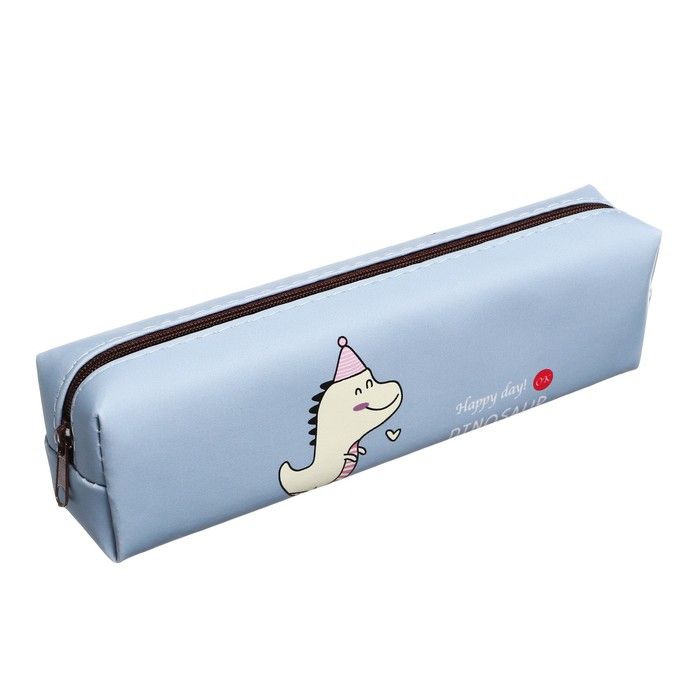 Пенал-косметичка школьный, на молнии Динозаврик, синий