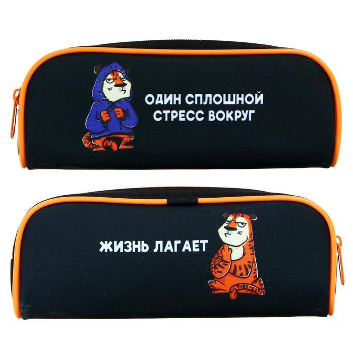 Пенал-косметичка школьный, 1 отделение, объемный, 80 х 210 х 40 мм, Calligrata «Тигр»