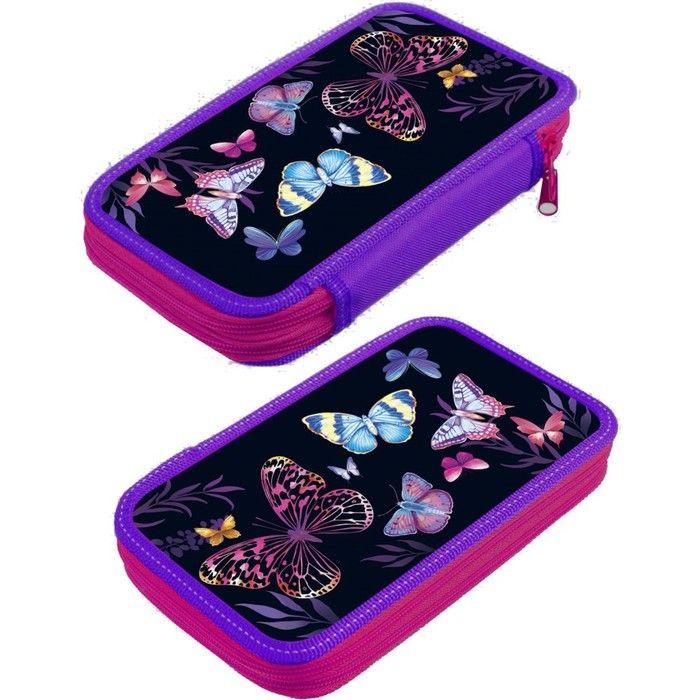 Пенал школьный твердый 125 х 205 х 40 мм, Calligrata «Бабочки», ламинированный картон